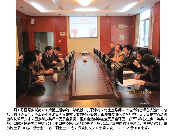 11月9日上午,受我校废油资源化技术与装备教育部工程研究中心主任张贤明教授邀请,解放军后勤工程学院陈国需教授、许世海教授和李华锋副教授一行来到我校废油中心考察交流,双方在废油中心学术会议室进行了亲切而又深入的交流。废油中心陈彬副主任、姜岩教授、申渝副教授、吴云博士、欧阳平博士等参加本次交流会。会议由废油中心主任张贤明教授亲自主持。