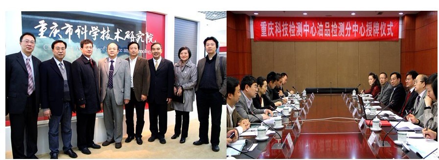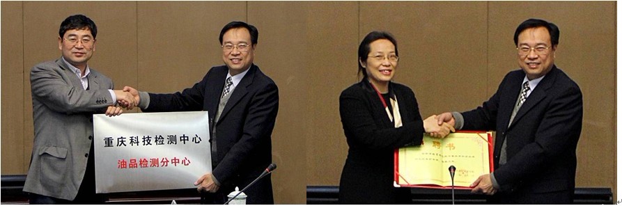 2011年12月1日上午,依托我校废油中心成立的“重庆科技检测中心油品检测分中心”,授牌仪式在重庆市科学技术研究院举行。杨继瑞校长、黄朗副校长、郑夕春主任、张贤明主任等一行出席了会议。重庆市科委副主任、重科院院长潘复生、党委书记皮晓青、纪委书记李雷霆、办公室主任杨乐彬、人事处处长龚亮、科研处处长于明政、科技检测中心主任杜渝、总工杨劲等参加了授牌仪式。