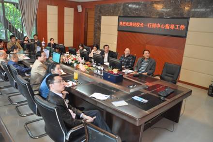 首先,赵校长一行听取了中心主任张贤明教授对平台职能、定位、规模、特色等情况汇报,赵校长对废油中心前期取得的成绩给予肯定的基础上,从学校和平台发展的角度,介绍了茶园新校区的周边环境、市政规划、交通设施,对国内外大学调研数据比较等大量信息,向与会人员做了系统的讲解、答疑,并广泛地征求、听取了意见。