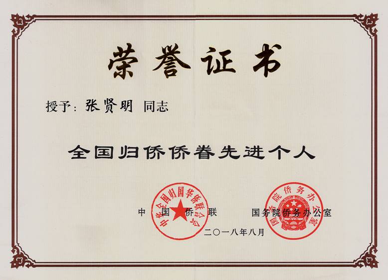 教育部废油工程研究中心主任、校侨联主席张贤明教授,获国务院侨办、中国侨联联合颁发的全国归侨侨眷先进个人证书。