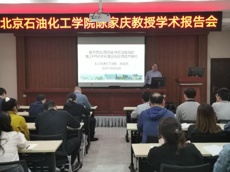 2021年4月23日,北京石油化工学院副校长陈家庆率其团队骨干韩严和教授及桑义敏教授莅临我校废油中心开展学术交流。陈家庆副校长为中心全体老师及学生做了《基于高频/高压脉冲交流电场的海上FPSO老化油回收处理技术研究》的学术报告,结合其团队目前的研究进展详细介绍了国内外有关老化油处理现状及发展趋势,姜岩教授和蒋光明教授就国内油田老化油处理所面临的问题与陈家庆副校长开展了深入探讨。