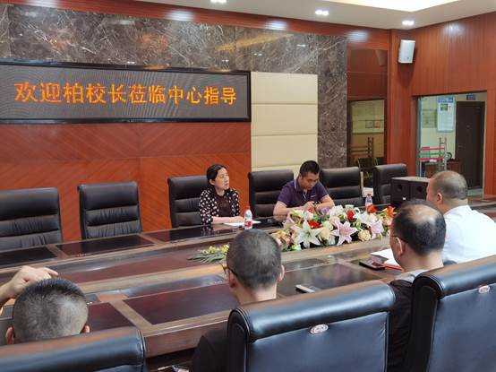 中心主任龚海峰教授首先向柏群校长汇报了今年中心在科技发展、成果转化、人才培养、奖项申报等方面的一些进展,及在实验室安全管理和建设方面的一些举措和成效。并针对近日市教委组织的实验室安全检查情况,龚主任进行了汇报,围绕检查中发现的实验室安全隐患和整改建议提出了相应的整改措施。